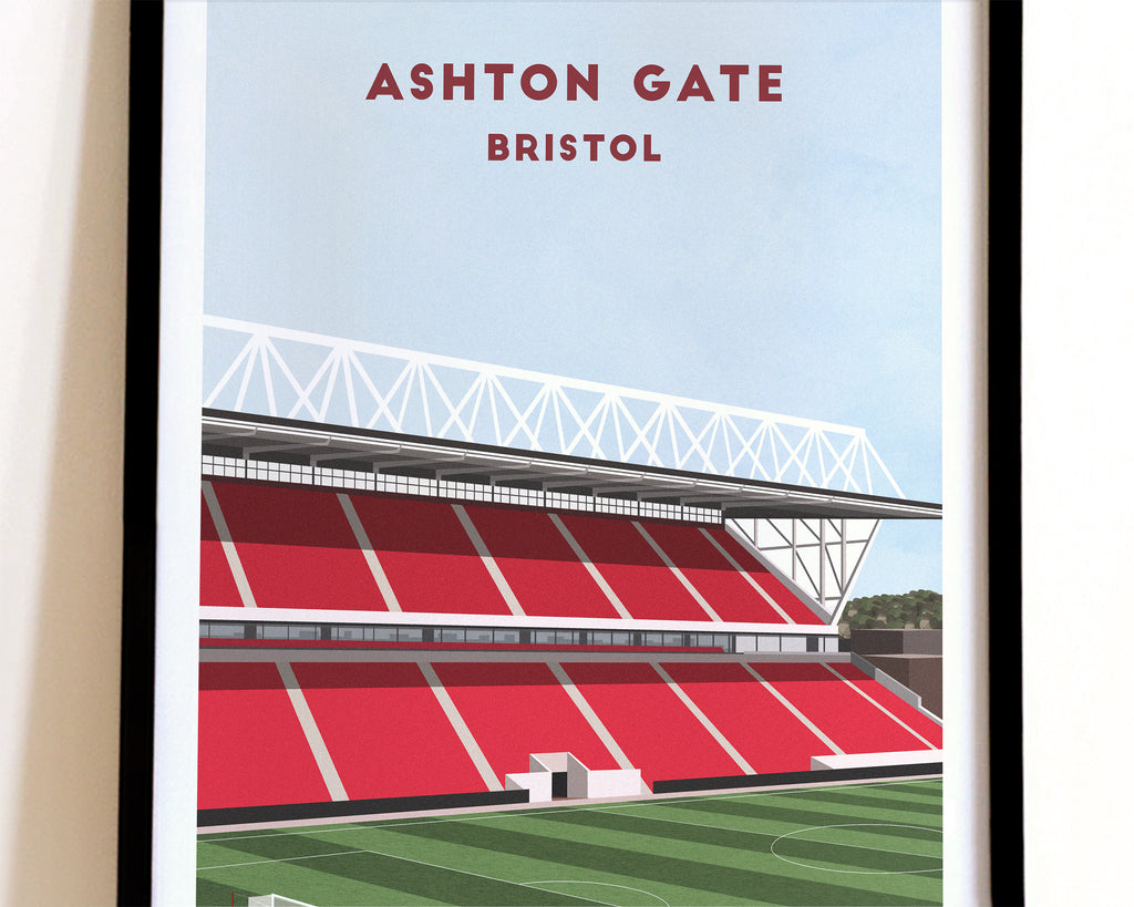 A truly unique print of Ashton Gate, Bristol City's home stadium, in a contemporary, minimalist style illustration to suit any modern home interior.