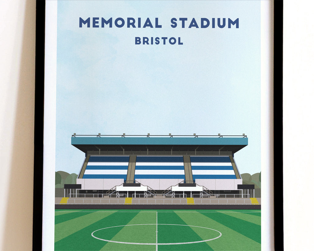 A truly unique print of Bristol Rovers Memorial Stadium in a contemporary, minimalist style illustration to suit any modern home interior.